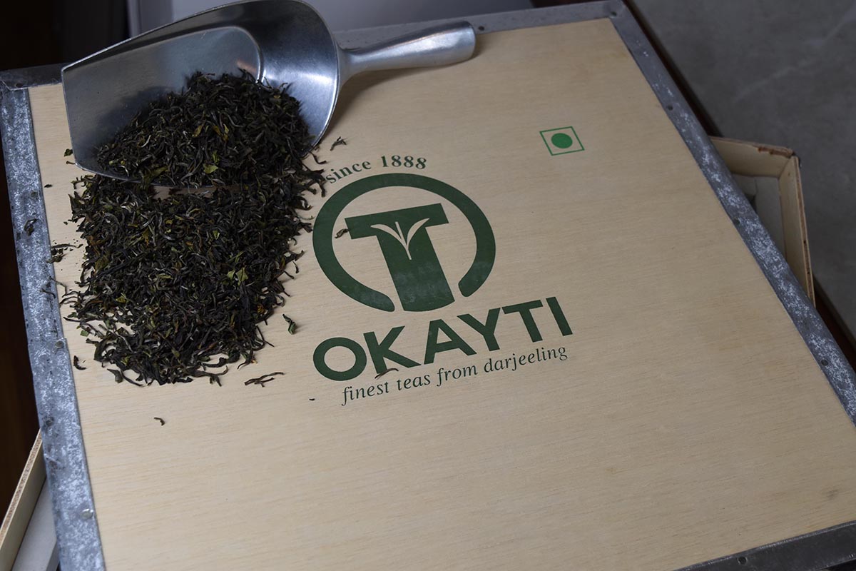 Die Okayti-Teeplantage im Mirik-Tal ist eine der ältesten der Region und stammt aus den 1870er Jahren. Die Plantage erstreckt sich über 1600 Hektar Land in einer Höhenlage von 1220 m bis 1890 m und ist von hohen Kiefern umgeben, die den Arbeitern und den Teepflanzen an sonnigen Tagen Schatten spenden.