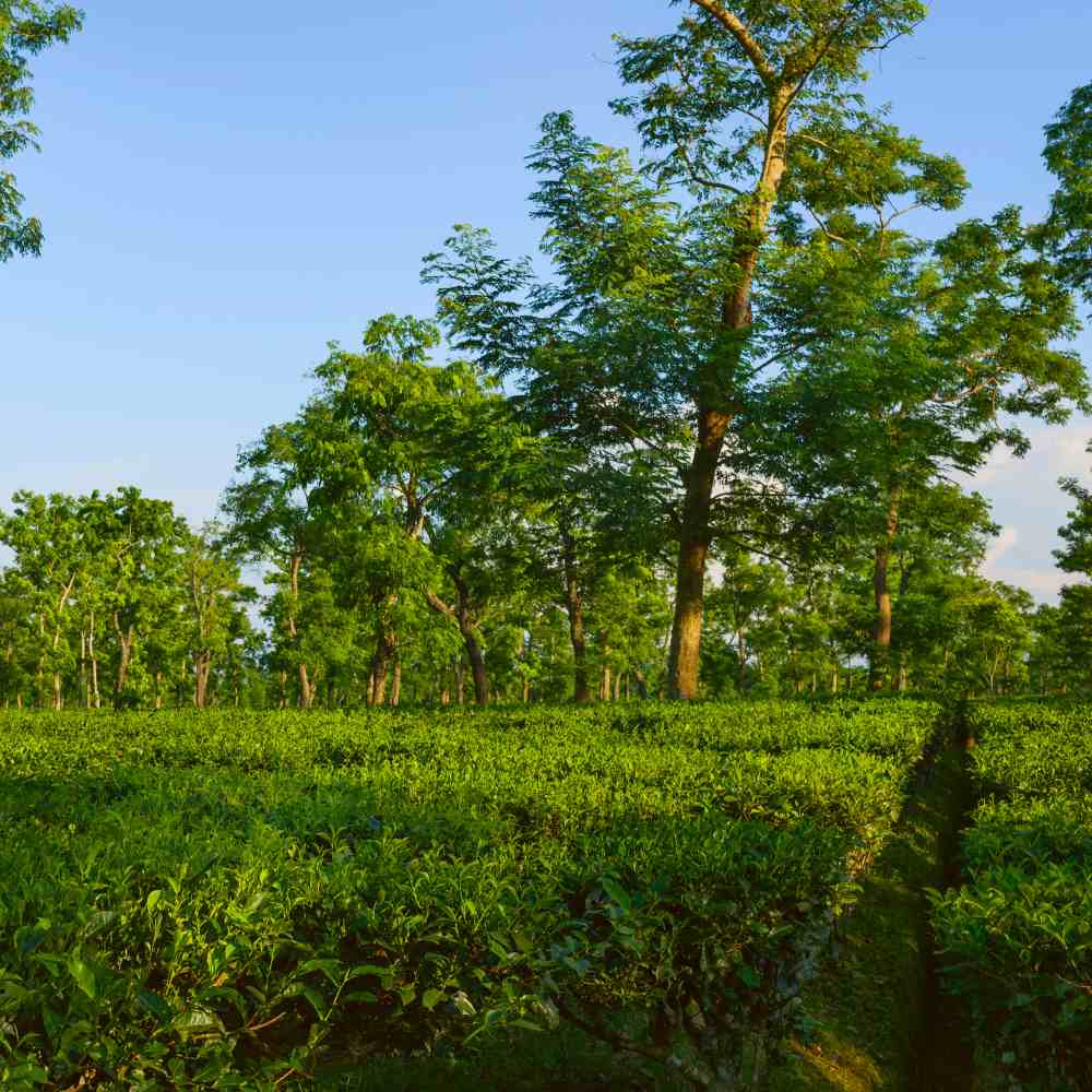 Cut by the mighty Brahmaputra river and renowned for its forests, wetlands and floodplains, Assam has a climate dominated by heavy rainfall and high humidity. The variety of tea bush grown in the wildlife-rich Assam region differs from the Camellia sinensis plant the British knew from China. Officially classified as the assamica variety of Camellia sinensis, this tea bush has broader leaves, is more robust, and can grow to over nine metres high.